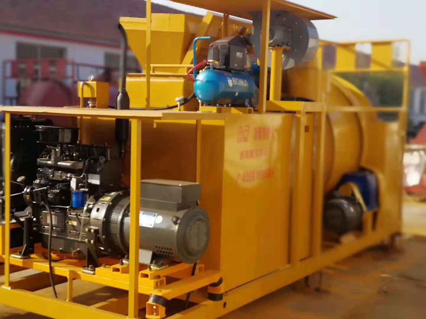 ● 配有熱瀝青罐,可向骨料和廢舊瀝青混合料加入液體瀝青以及灑布灌縫等。